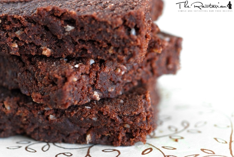 NOTES: Refrigerate this raw brownie recipe for a couple of hours if you want to slice it. You do not have to refrigerate it, but it is much easier to slice when chilled. By the way, this is actually a raw brownie recipe that keeps its shape! So it can be good for serving to non-raw fooders because the presentation of this raw brownie recipe is good when chilled.
